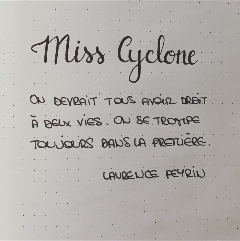 Cette citation du jour est tirée d’un livre qui m’a profondément touchée. Il s’agit de Miss Cyclone, de Laurence Peyrin. Un petit bijou sur la vie et les choix qu’elle fait pour nous. Sur ceux qui pensent ne pas valoir assez et ceux qui en veulent toujours plus. Sur le pouvoir de l’amour, de l’amitié et des mots de John Lennon. ❤️ Vous ne l’avez pas encore lu ? Eh bien vous savez ce qu’il vous reste à faire !