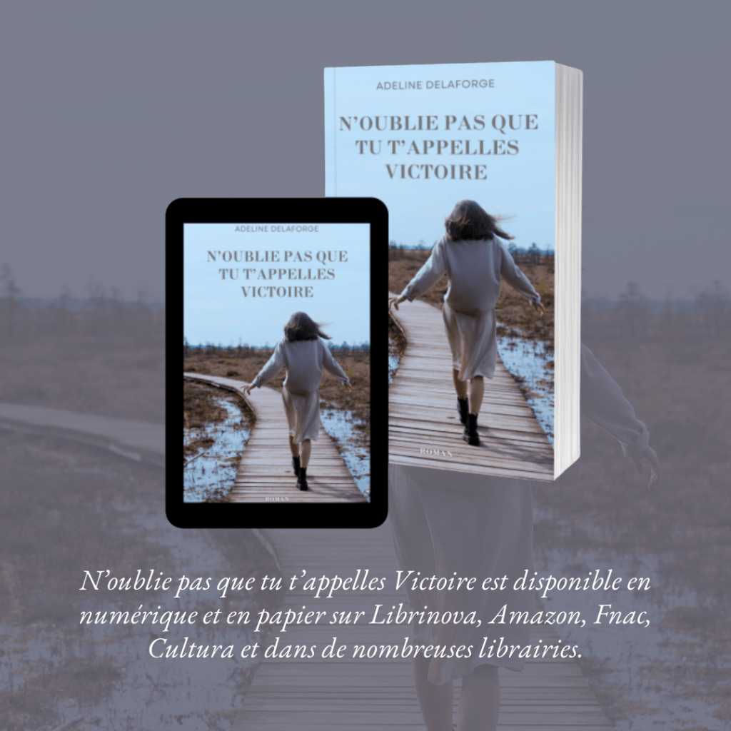 Alors voilà, après des années de travail, de nuits à écrire et réécrire, de moments de doute, le roman a pris son envol en numérique cet été, et arrive bientôt en papier. Savoir que des lecteurs découvriront cette histoire, mais aussi ma Victoire, avec ses failles et ses forces, me remplit d’une grande émotion. N’oublie pas que tu t’appelles Victoire, c’est le fruit d’une longue route, et j’ai hâte de la partager avec ceux qui, peut-être, se reconnaîtront dans les pages.